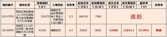 仅隔一周厦门土拍再次举锤,呈现的却是一冷一热的局面:今年来拟出让的最大地块——位于同安新城的2014TP02商住地块,因无人应价最终遭致流拍;而今年来最小地块——翔安区2014XP04商住地,被厦门海晟房地产开发公司以 5.18亿元竞得,楼面价12634.15元/平,溢价率为57.93%,晋升翔安地王!