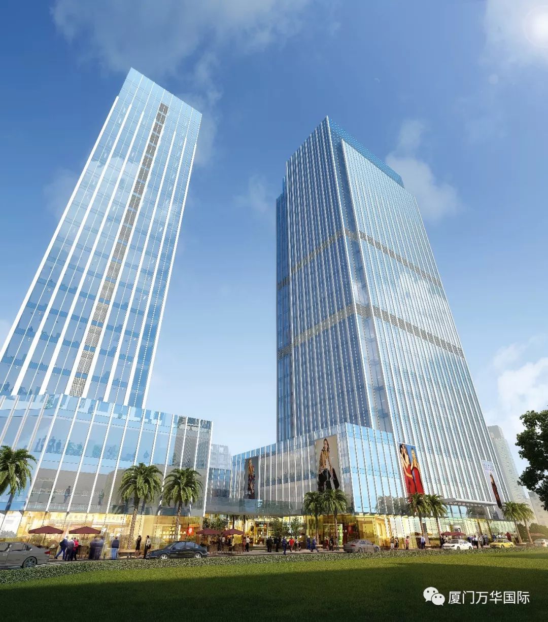 万华国际重金引入江河幕墙,将原本实体墙升级为LOW-E双银超透玻璃幕墙,透过玻璃幕墙,一揽五缘湾盛景,你在楼上俯瞰风景,看风景人在楼下仰望你。此时,你已成地标建筑的一部分,也修饰了这座城市的背景色。